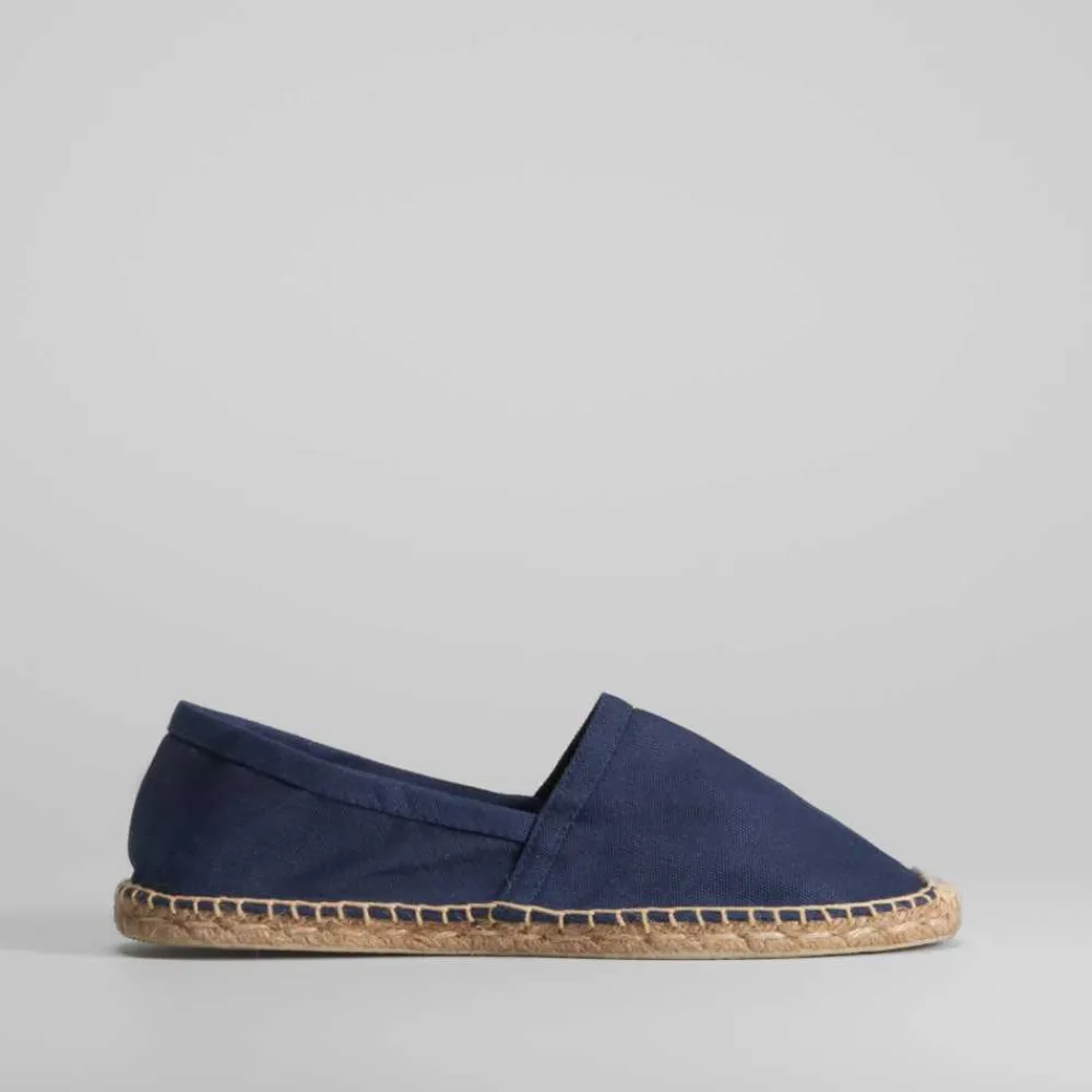 Alpargata básica de hombre en denim oscuro y piso de esparto de la marca COCONUT DRIVE. Recomendamos coger una talla más de la que utilices habitualmente.