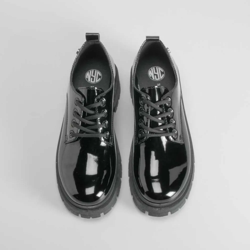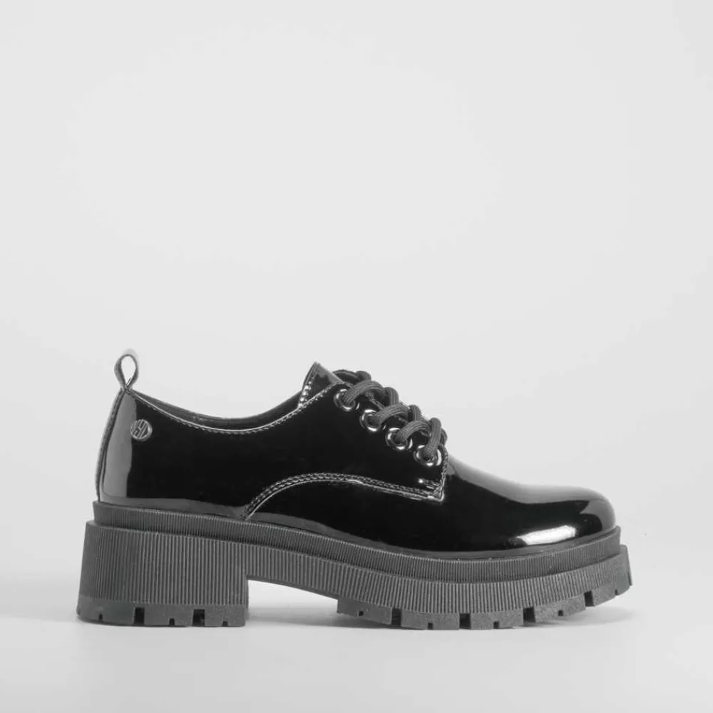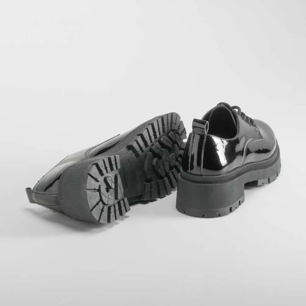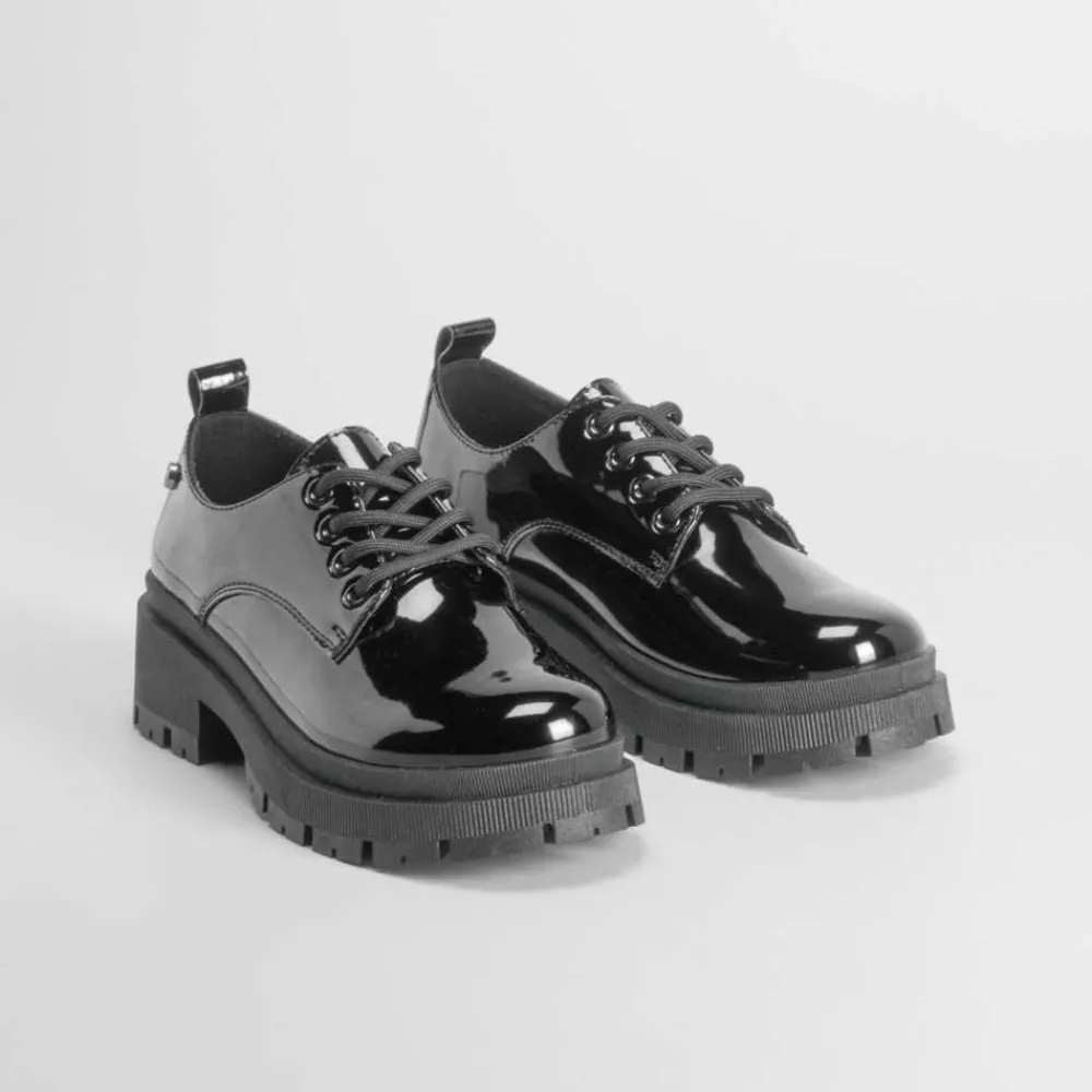 Online Blucher negro de charol con cordones Mujer Zapatos Tacón|Bluchers