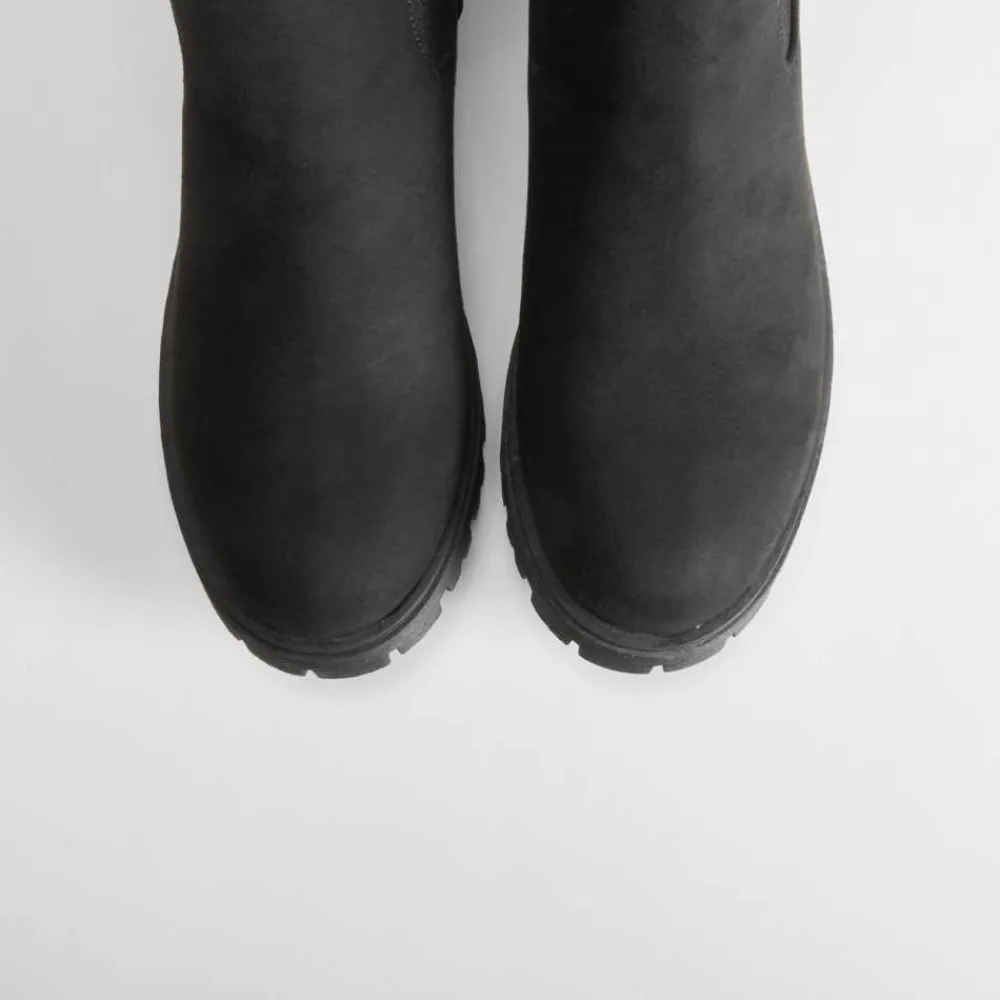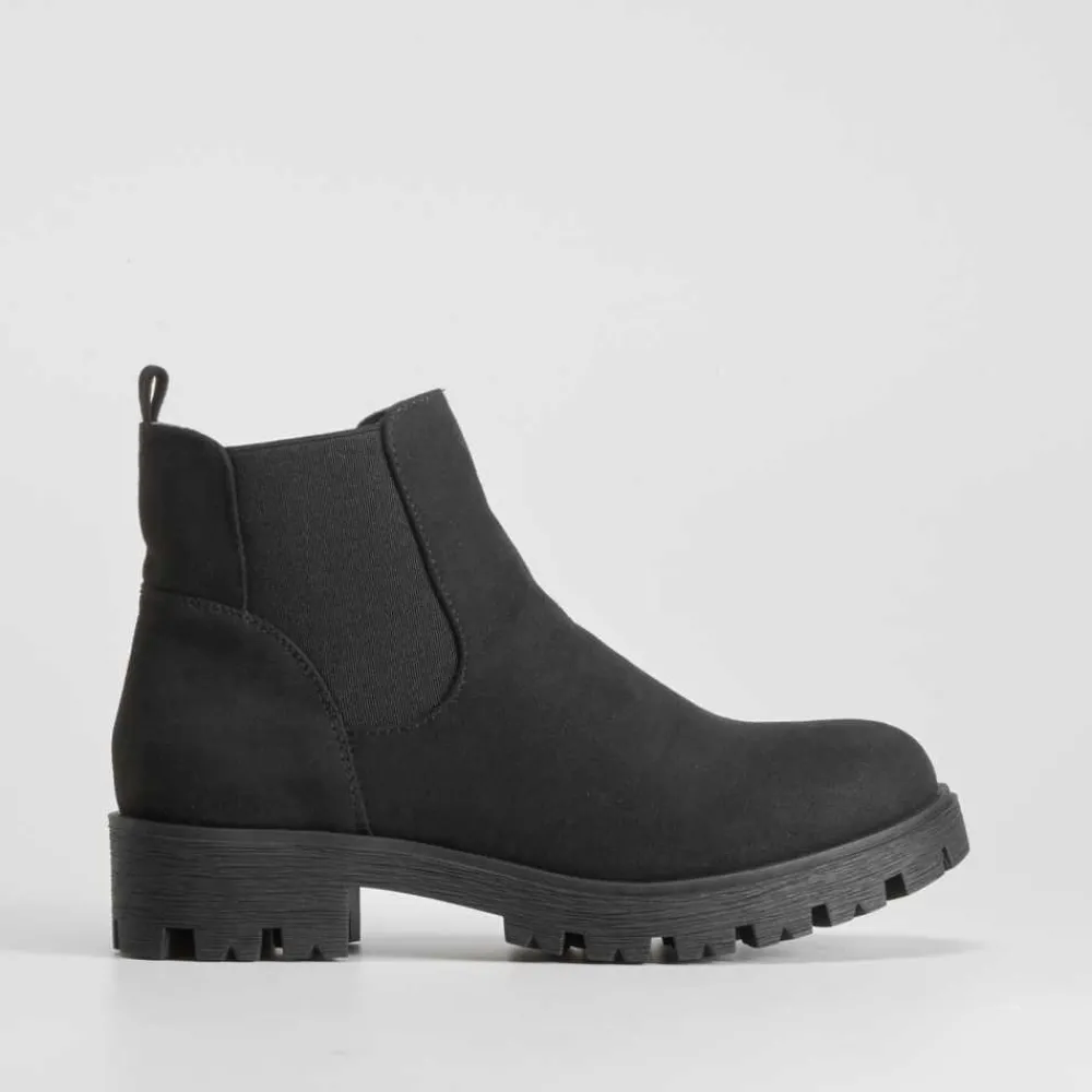 Botín chelsea para niña de la marca OH GIRL. Modelo con elásticos en los laterales en color negro, tirador trasero y suela con tacón bajo contrastada.