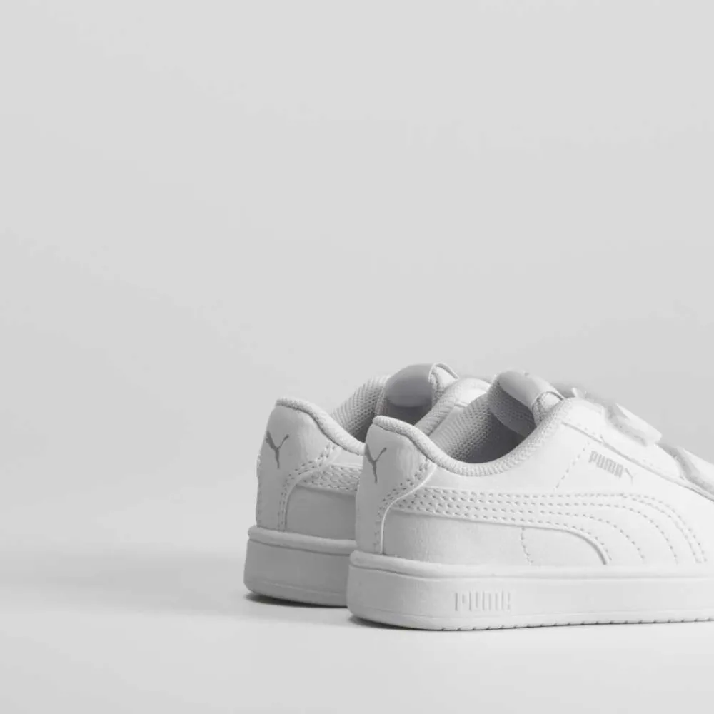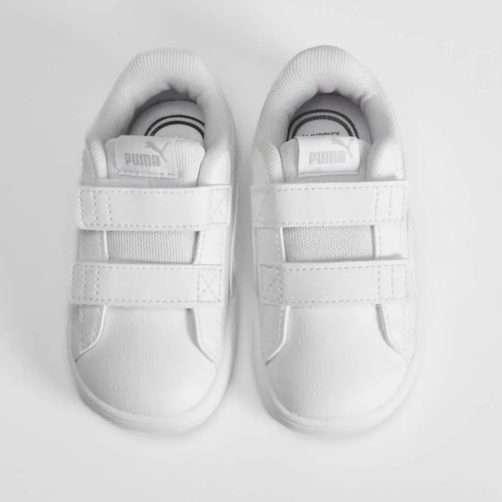 Tenis blanco con velcros de PUMA para bebé. Modelo monocolor con dos tiras de velcro y logo entonado en el lateral.