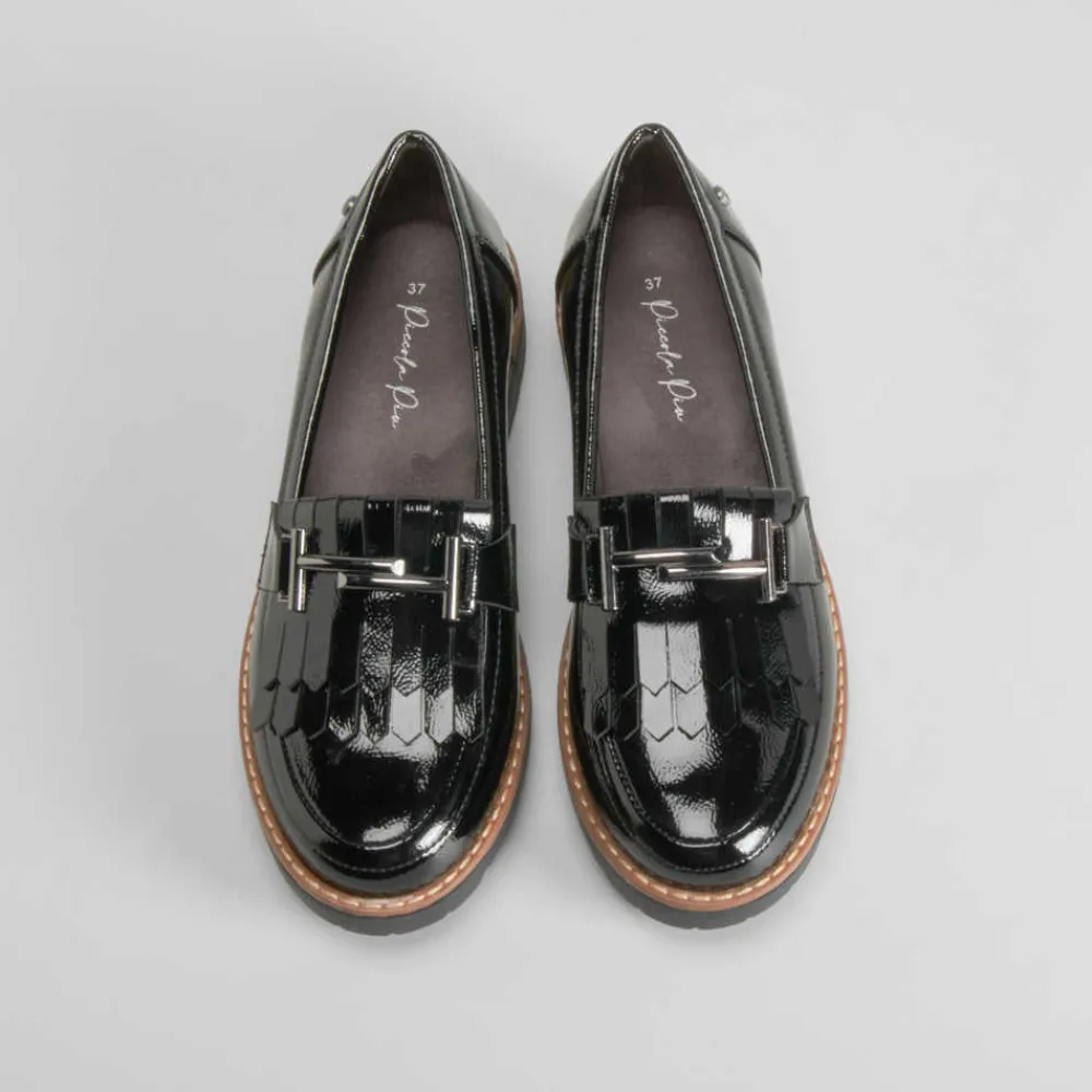 Online Mocasín flecos estribo negro PICCOLA PIU Mujer Mocasines