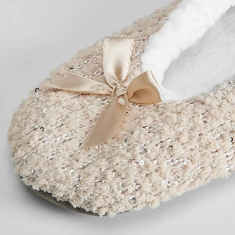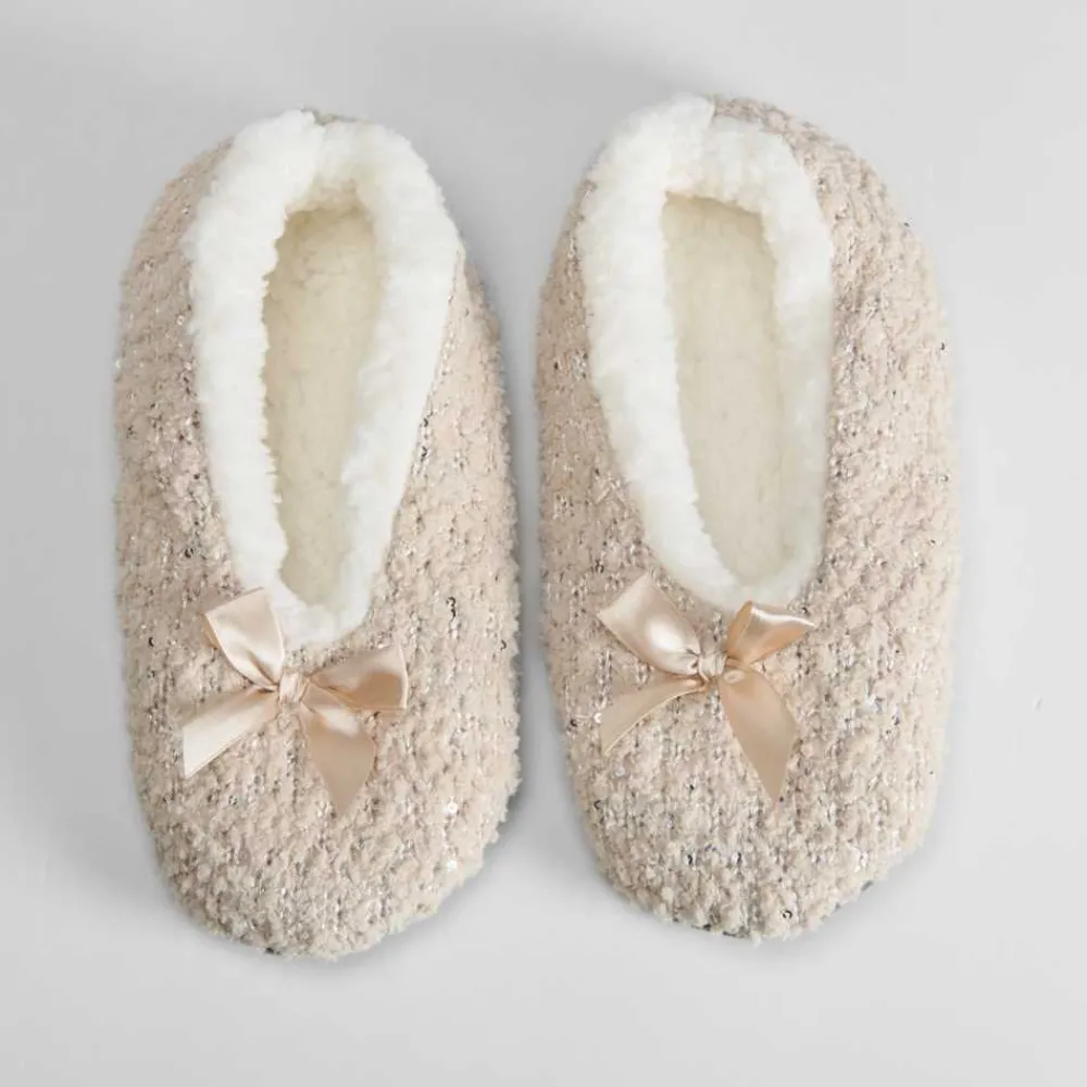 Online Slippers de mujer forradas beige lazo Mujer Calcetines|Zapatillas Casa