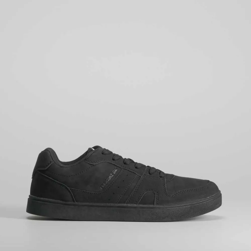 Zapatilla urbana de hombre de la marca NYC en color negro. Modelo con cordones y cosidos entonados.