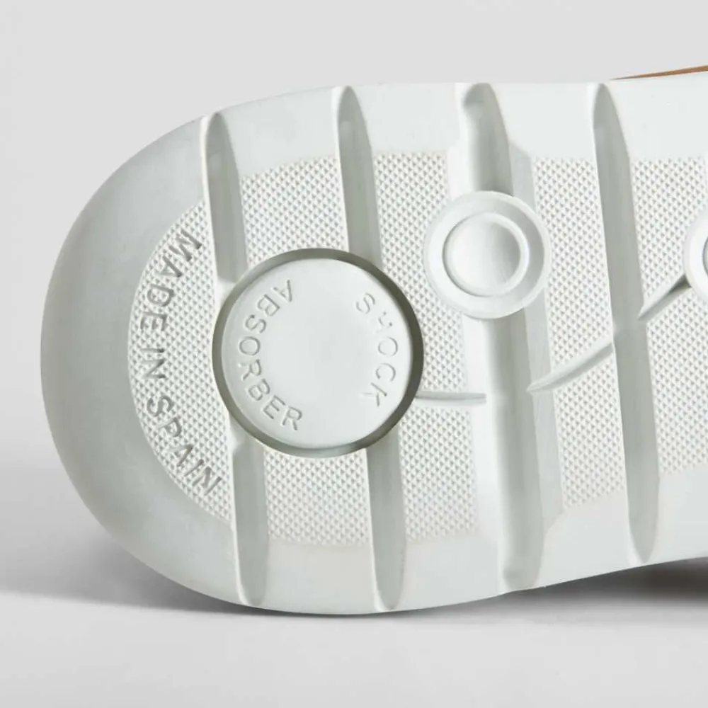 Zapato casual slip on de ancho especial de la marca COMFEET. Corte de piel en color cuero con elásticos en el empeine y perforados laterales. Hecho en España.
