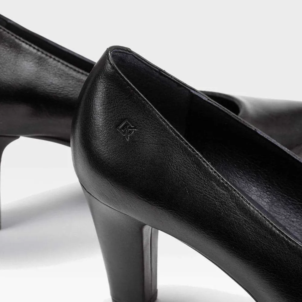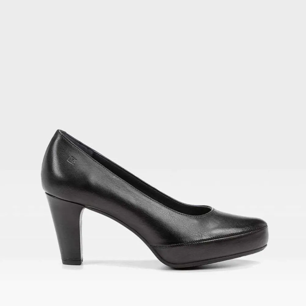Zapato de salón negro de la marca FLUCHOS para mujer. Corte confeccionado en piel con un diseño cómodo y flexible. Tacón 6cm de altura. Hecho en España.