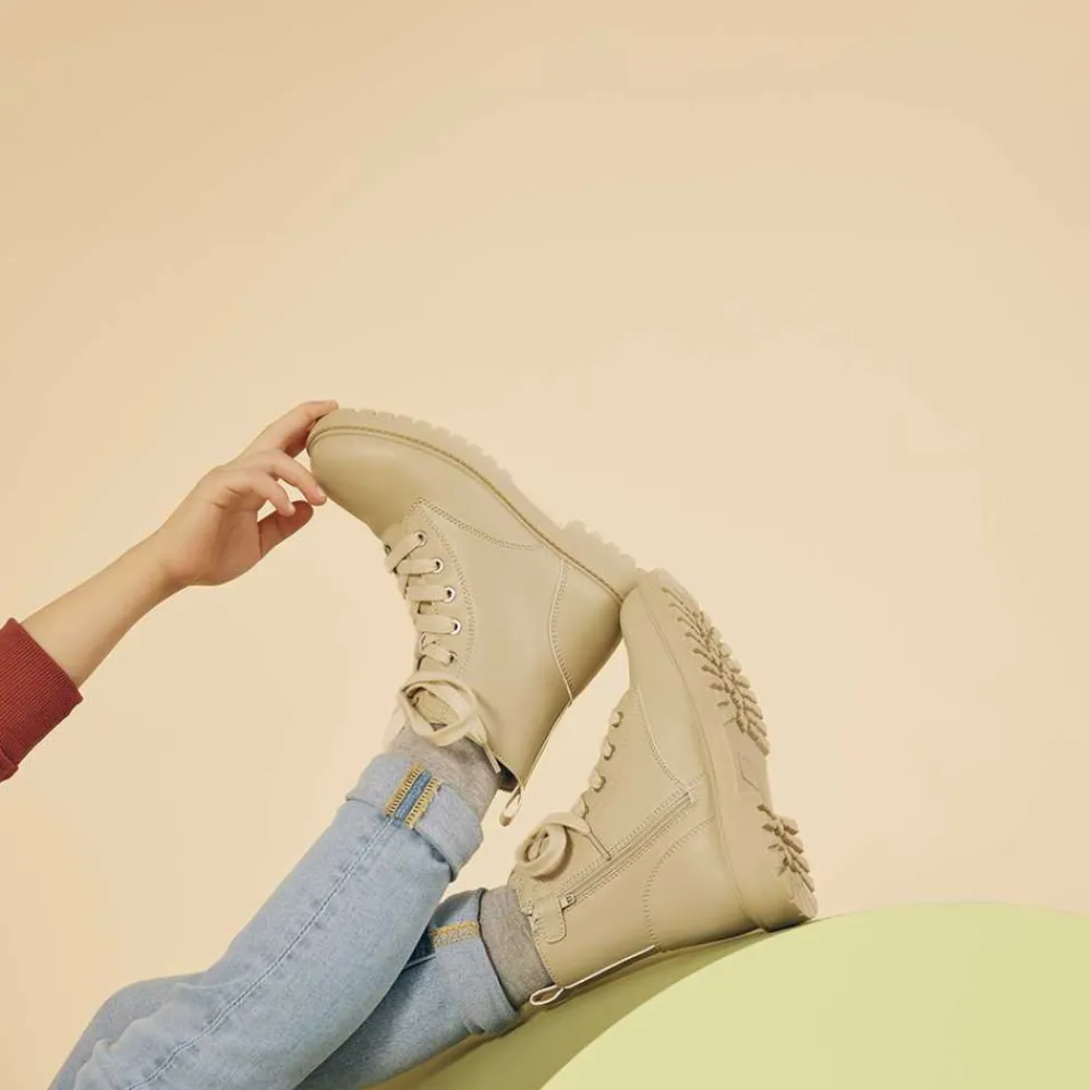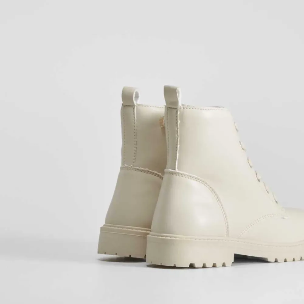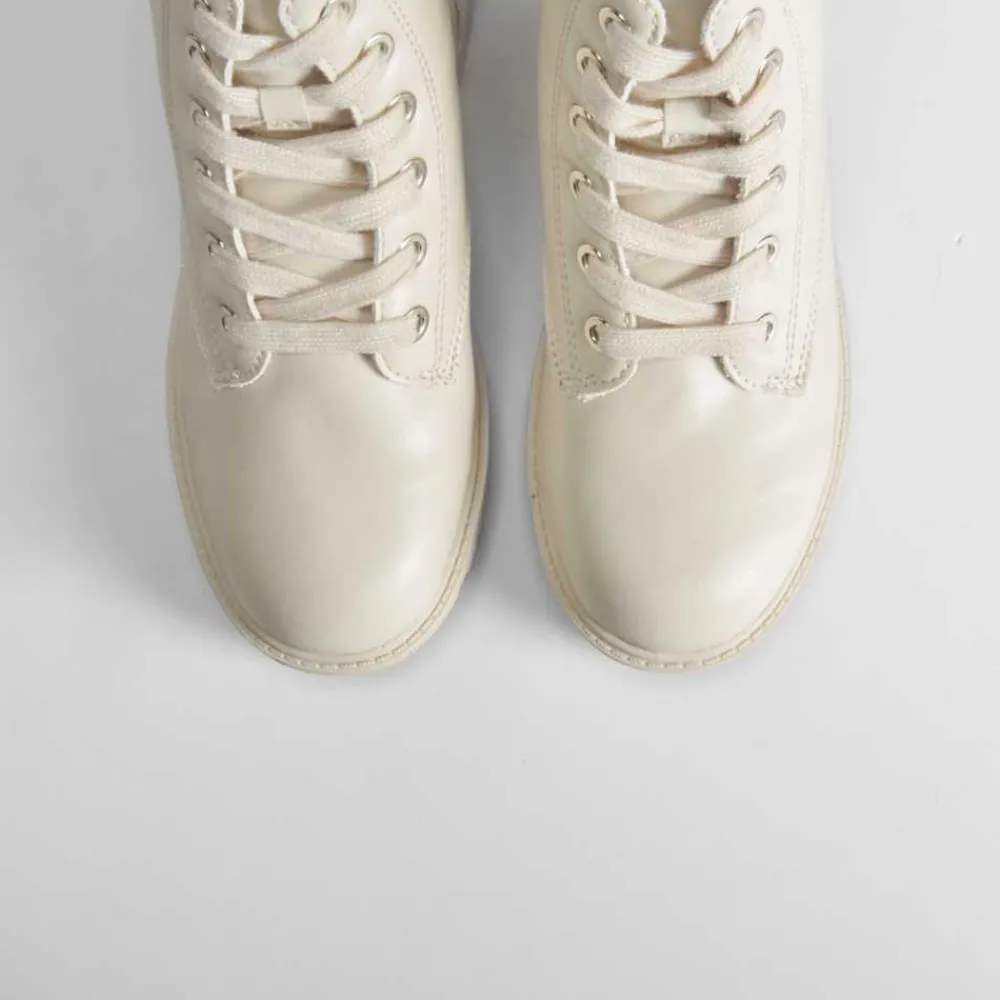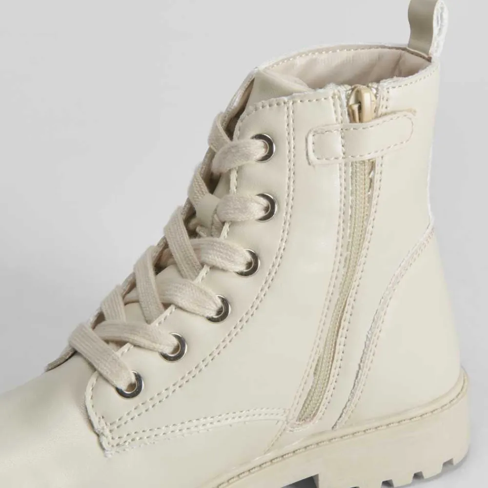 Botín militar básico en color beige de OH GIRL para niñas. Modelo monocolor con cordones y cremallera lateral.