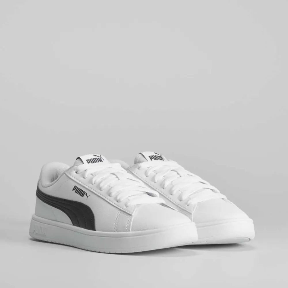 Tenis blanco y negro con cordones de PUMA para niños. Modelo con diseño clásico y funcional.