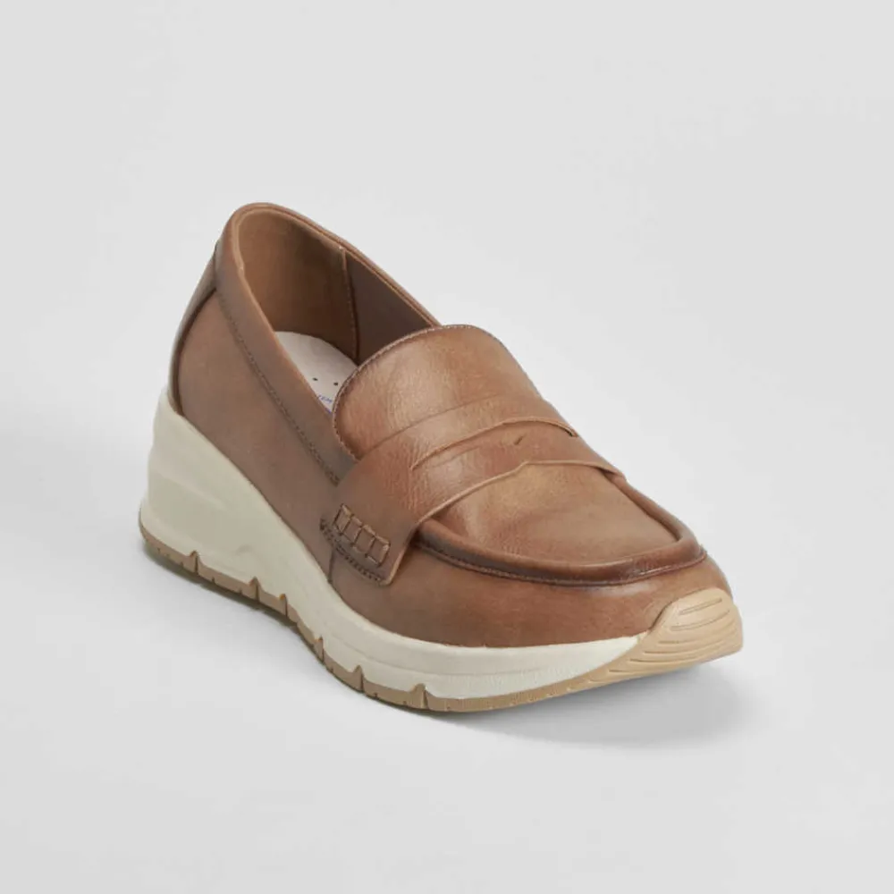Outlet Mocasín cuña beige Mujer Zapatos Confort|Mocasines