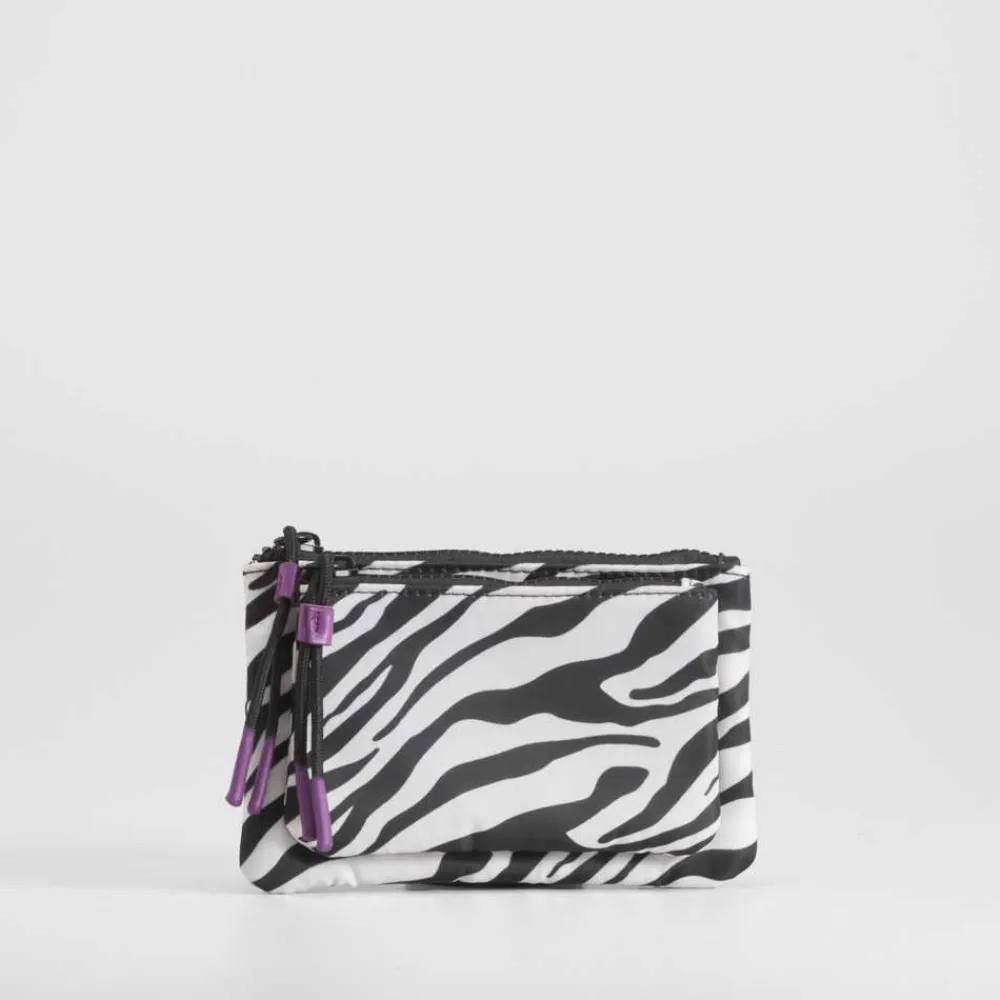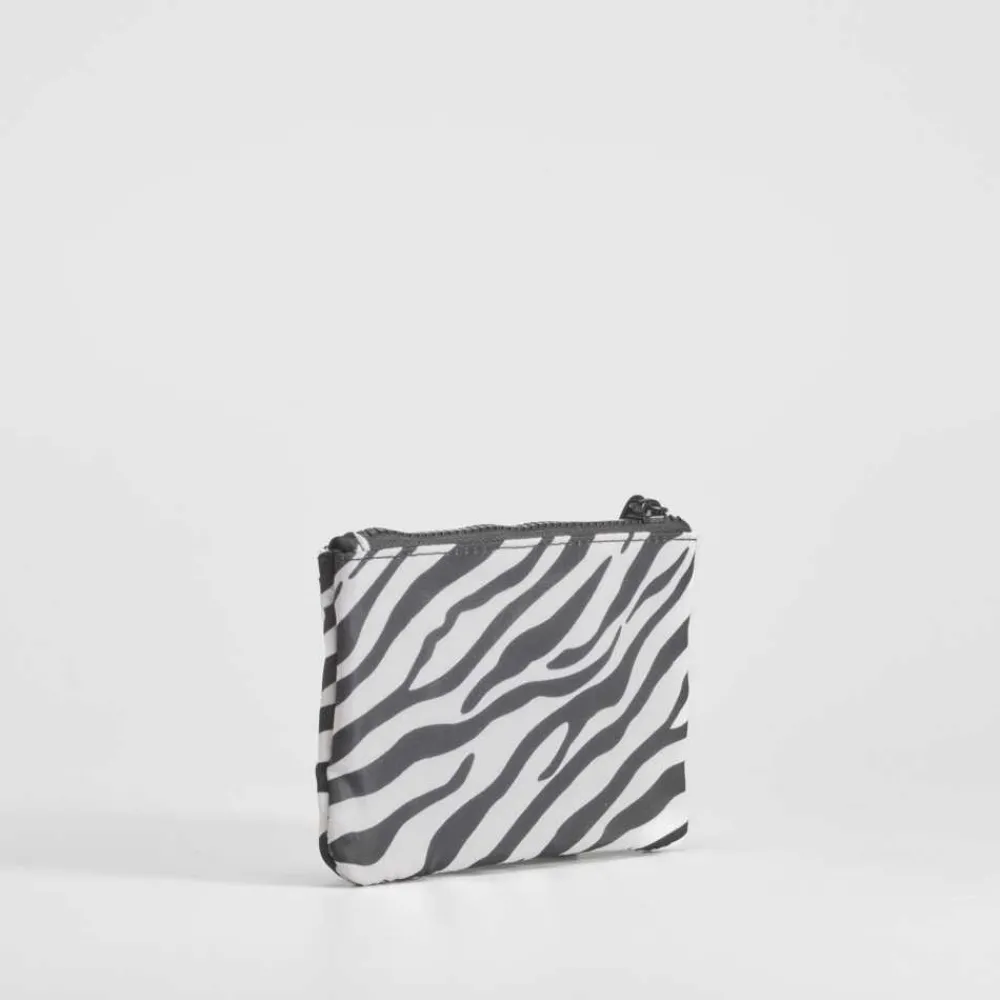 Monedero de nylon de NYC para mujer con print de cebra blanco y negro. Tiene dos bolsillos con cremallera y ranura para tarjetas en el interior.