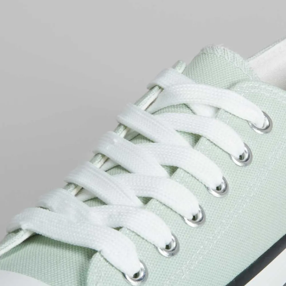 Zapatilla de lona básica de la marca NYC para mujer. Exterior textil liso y sencillo en color verde menta. Cierre de cordones y puntera de caucho. .