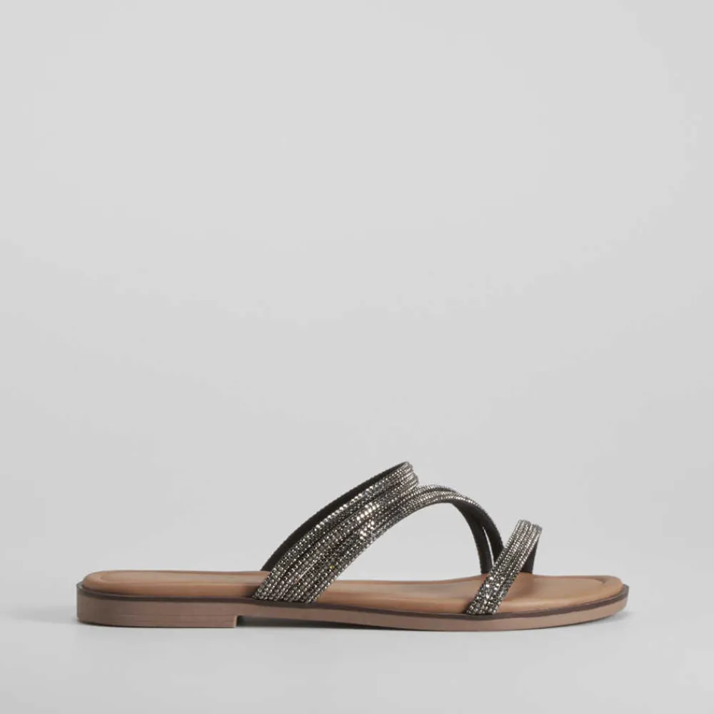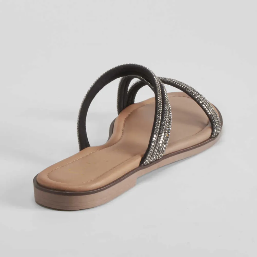 Sandalia plana tiras brillo negra PICCOLA PIU