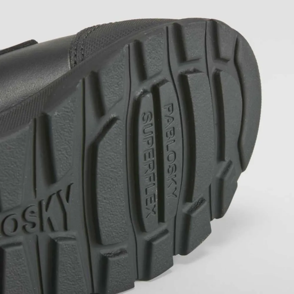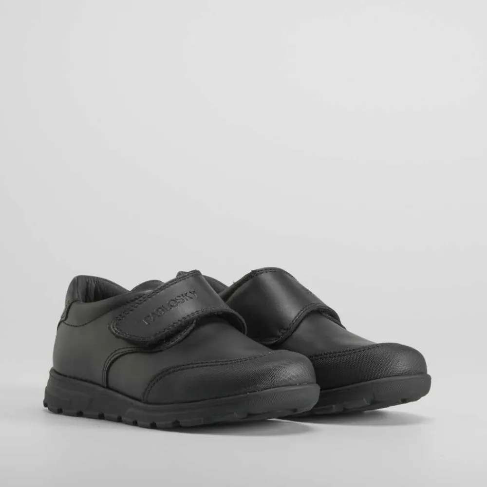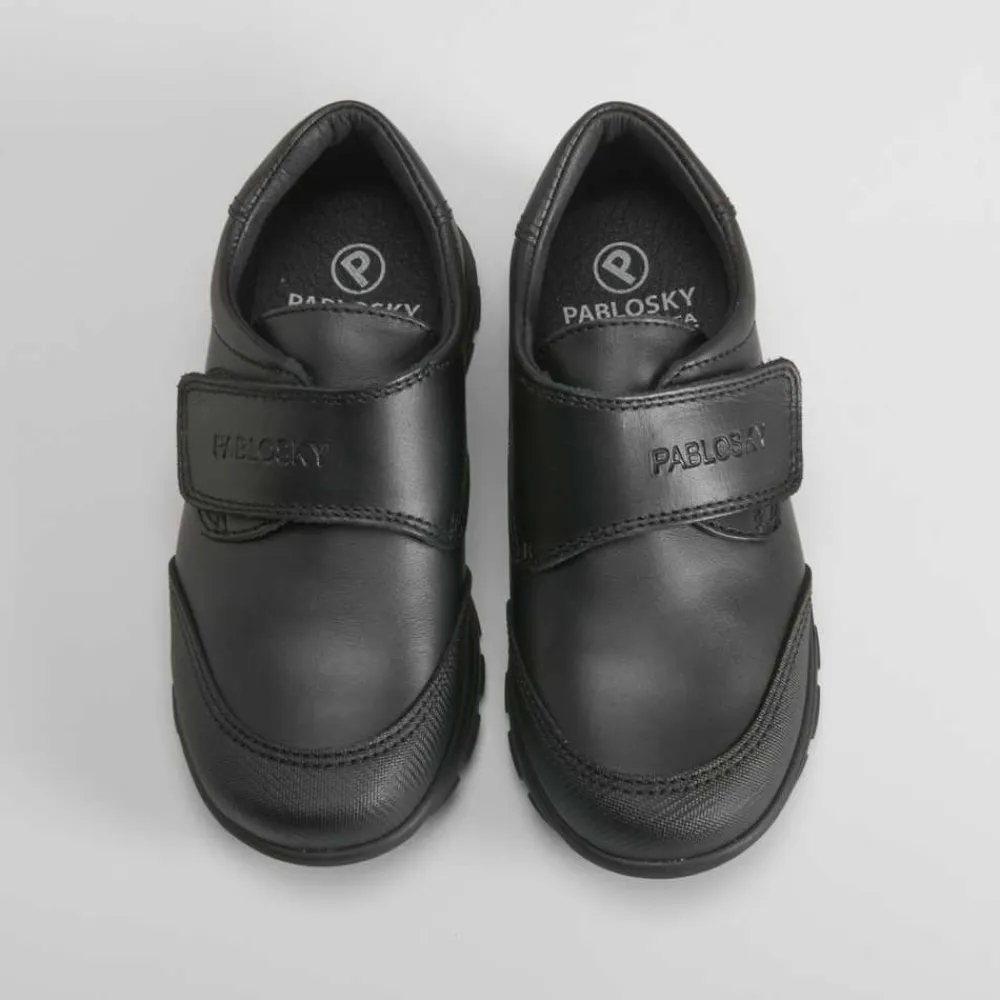 Zapato colegial de piel en color negro de PABLOSKY. Cierre de velcro y puntera reforzada para una mayor resistencia.