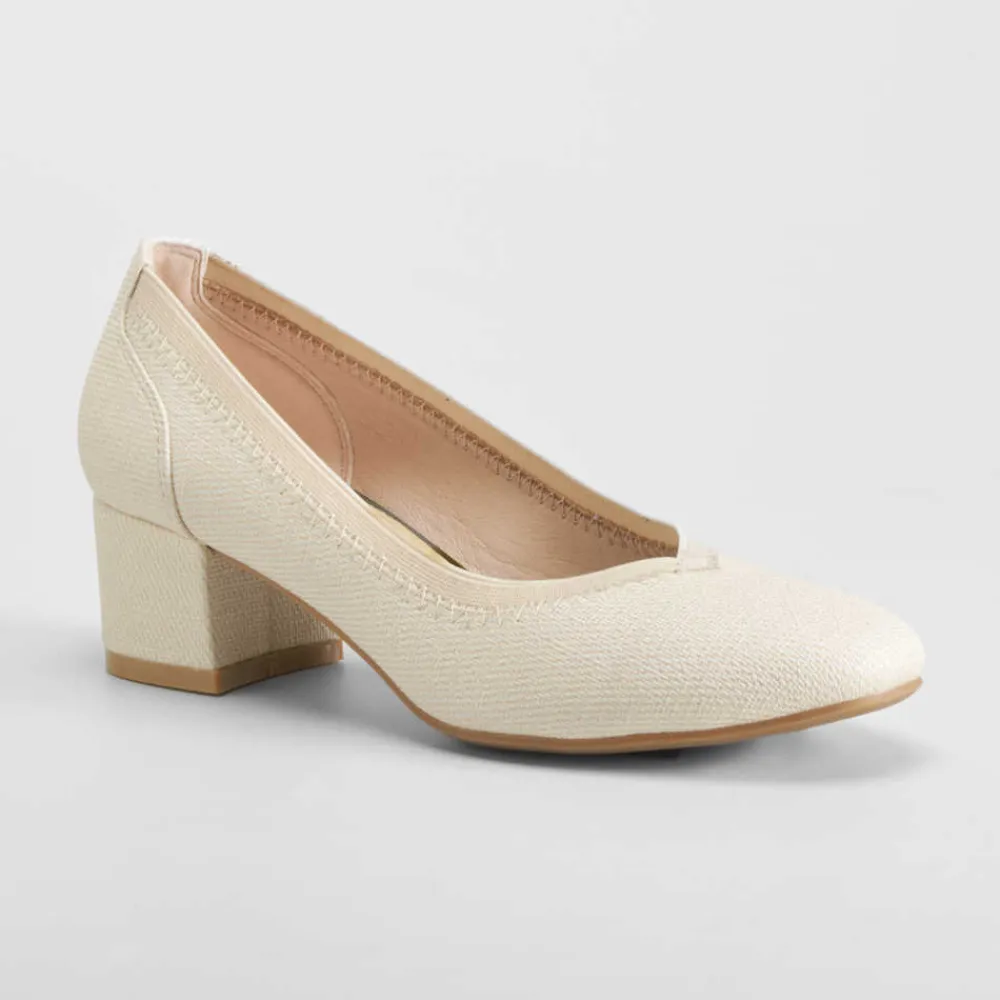 Este modelo presenta un diseño clásico de tacón medio que combina funcionalidad y estilo, ideal para ocasiones formales o el día a día. El color beige aporta sofisticación y fácil combinación con diferentes prendas. La marca COMFEET garantiza calidad y confort en cada detalle.